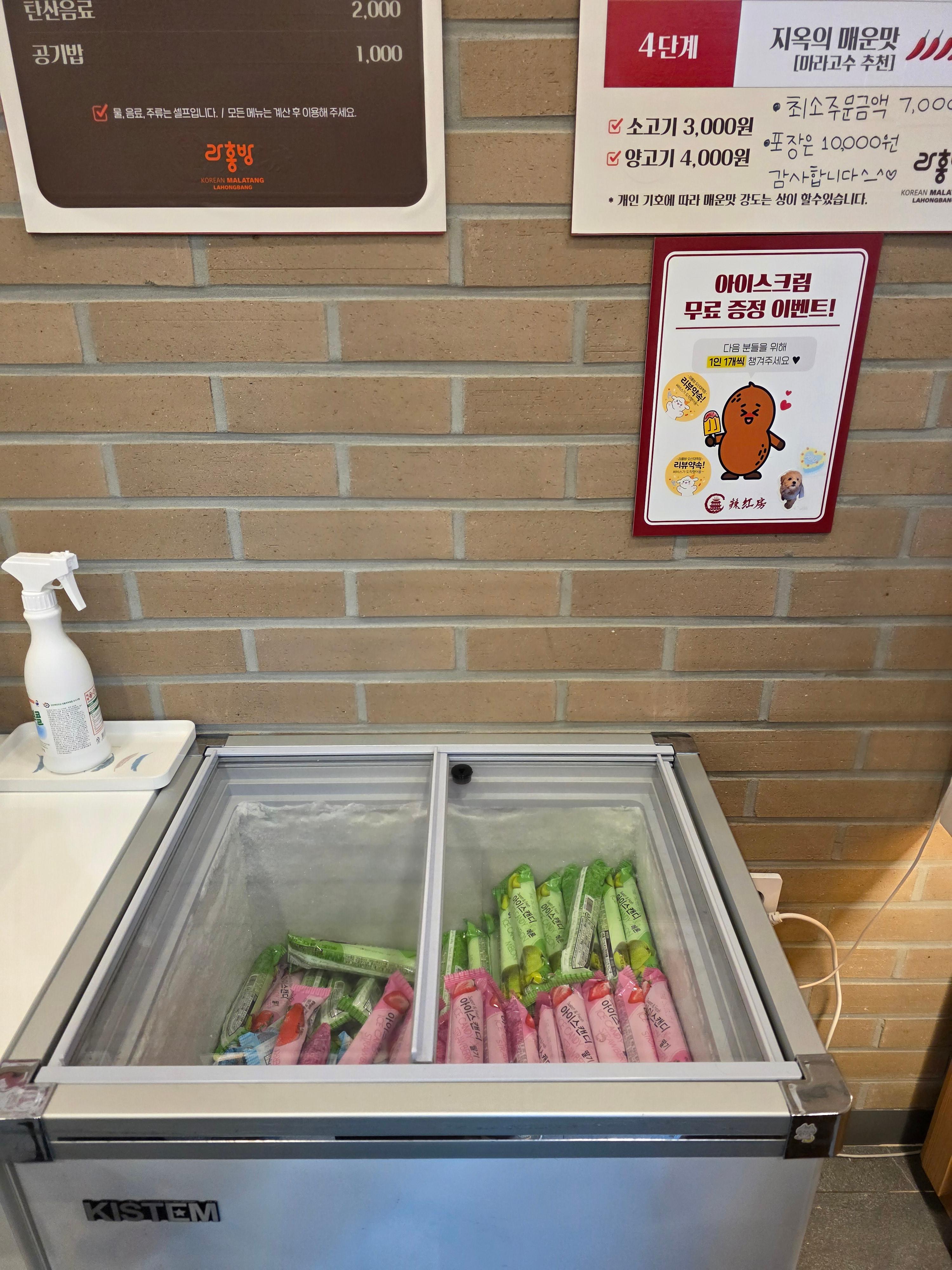 마라탕 먹고 나서 후식으로 아이스크림도 무료라서 얼얼한 입을 잠재우는데 너무 좋아요.